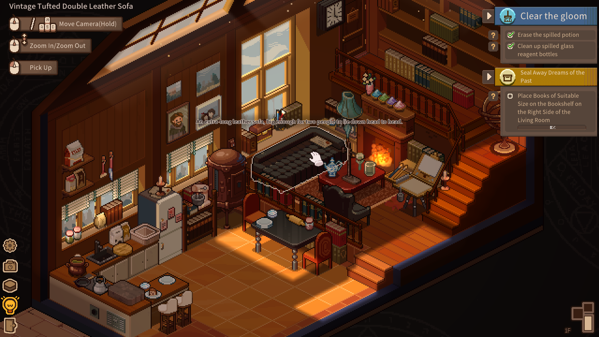 There were a couple speedbumps from the beginning, like I didn't like the way characters spoke with emoticons like this: (づ ◕‿◕ )づ Personally, I found it irritating and felt that it damaged my immersion in the world. Secondly, I found the controls, though simple, a bit unintuitive. Most of the time you're just clicking on things to pick them up or put them down, but interacting requires a right click and moving the camera uses the scroll wheel. This all sounds good on paper, but over time I was constantly catching myself using the wrong mouse buttons for things. This is something I think could use more playtesting.